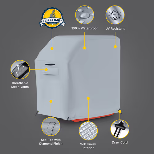 For pieces exposed to constant sunlight, the Seal Skin ProGuard Pressure Washer Cover offers lightweight yet durable UV-blocking protection. Its high-density polyester fabric prevents fading, cracking, and heat buildup, while breathable mesh panels allow airflow, reducing condensation and mildew formation. Designed to keep surfaces cool and shielded in high-heat environments.