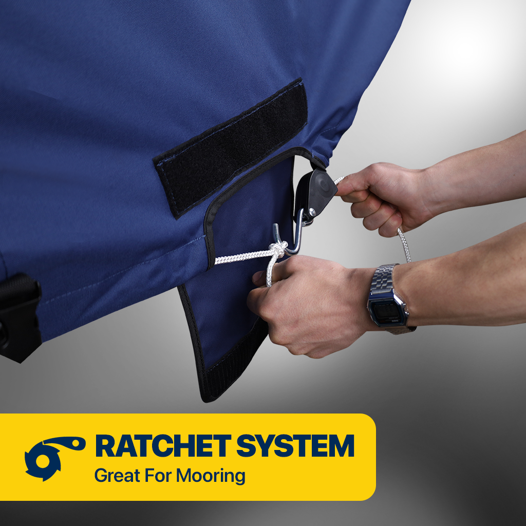 Heavy-duty adjustable rope ratchet system to secure the cover tight, great for mooring.